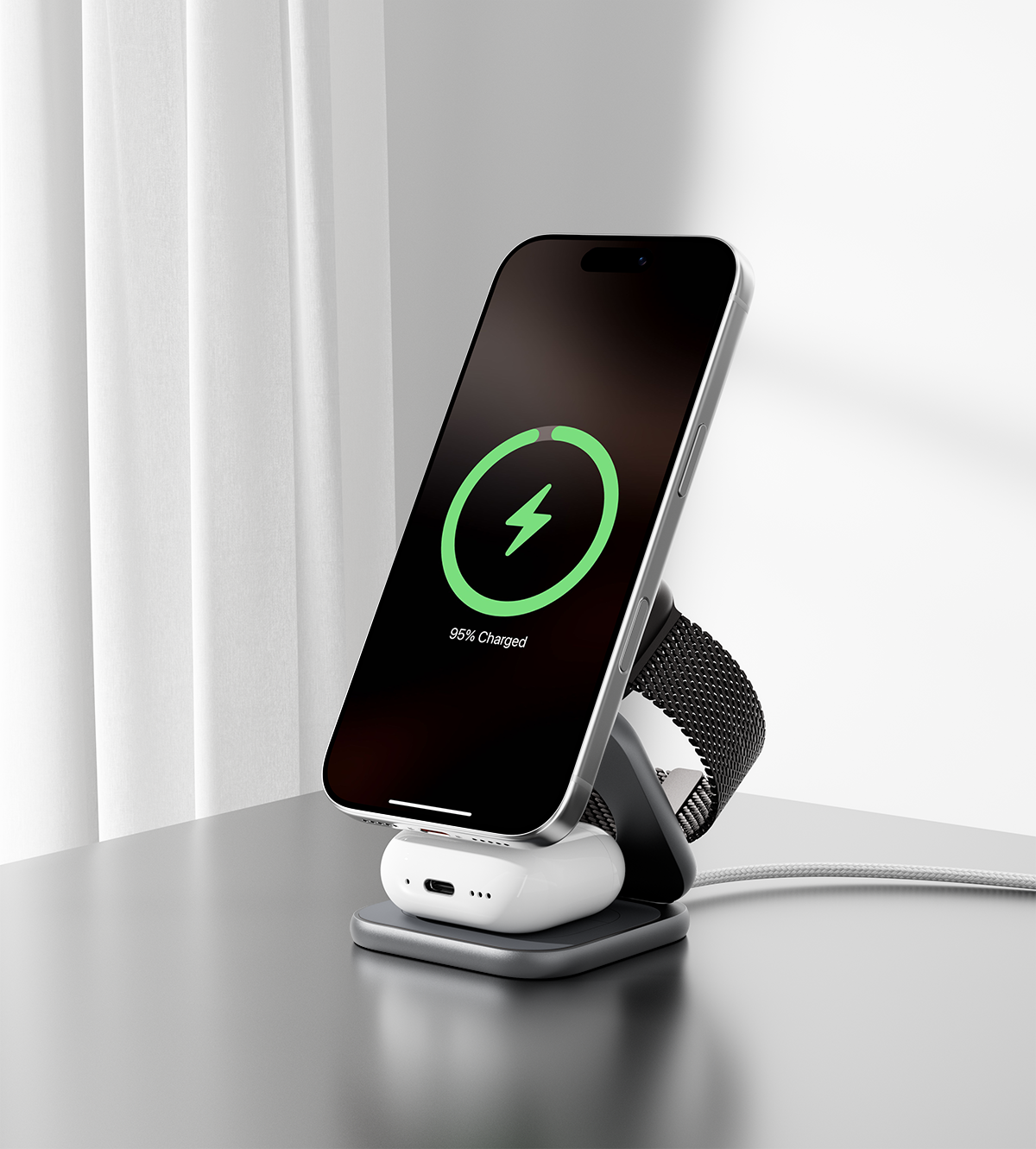 KUXIU X40 Turbo Qi2.2 Certified 25W 3-in-1 MagSafe Foldable Wireless Charging Stand - Gray